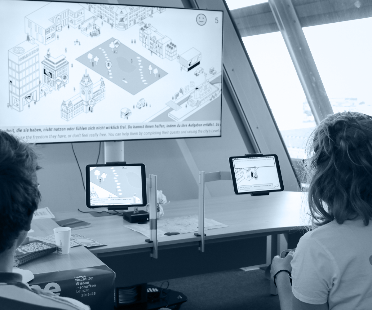 The Long Night of Science is a successful format for universities and research institutes to showcase their work to the general public. Happening once a year in many German cities, the event attracts crowds in the early evening to explore campus labs, participate in hands-on science workshops, solve riddles in science games, and hear researchers explain their latest findings in everyday language. At two of these events, the science nights in Leipzig and Berlin, mathematics institutes showcased the MaRDI station. And it drew a crowd! Especially younger audience members, even kids, familiar with gamepads and solving quests on screens, were immediately drawn to the setup and quickly learned about FAIR data and the challenges of managing research along the way. "Can I play again?" might have been the most-often heard question that evening.